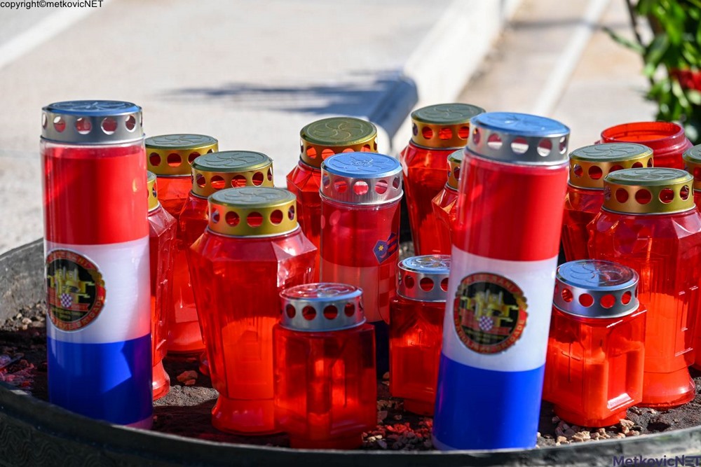 vijenci i zapaljene svijeće kod spomenika poginulim braniteljima, u